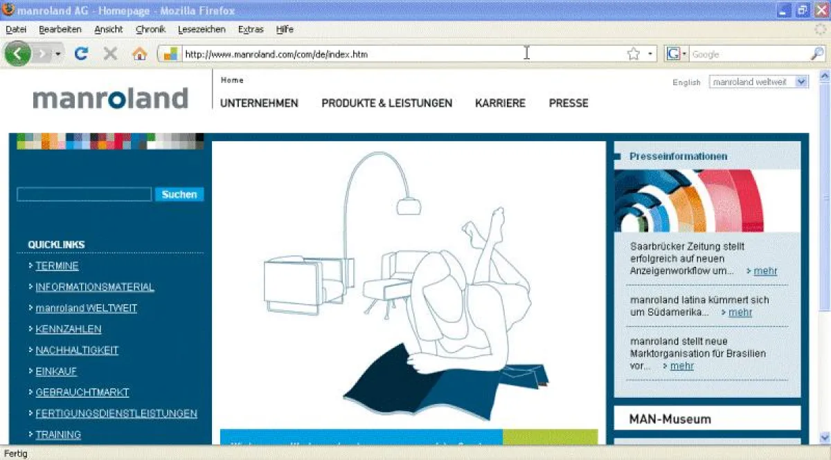 (openPR) München, 04. August 2009 – manroland, zweitgrößter Hersteller von Drucksystemen, setzt die Einführung seines neuen Corporate Designs im Web weltweit um. Seit dem Startschuss in 2008 wurden bereits manroland.com sowie die deutsche Website technisch wie inhaltlich auf den neuesten Stand gebracht und Neuerungen wie ein Gebrauchtmarkt für Druckmaschinen online gestellt. Die Projektumsetzung in nur drei Monaten sowie das Hosting des gesamten Internetauftritts wurden vom Full Service Web- und IT-Dienstleister edicos übernommen. Nun folgt der weltweite Roll-out.