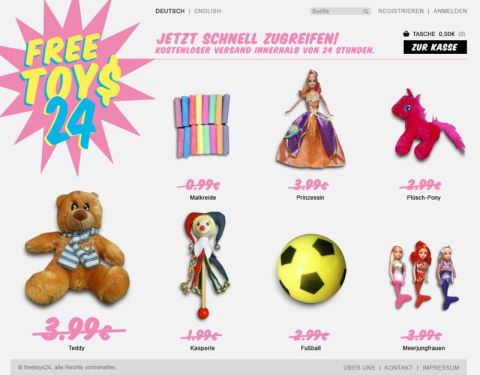 Der Webshop „Freetoys24“ wirbt mit Gratis-Spielzeug – vom Teddybären bis zur Puppe. Klickt der User auf eines der vermeintlichen …