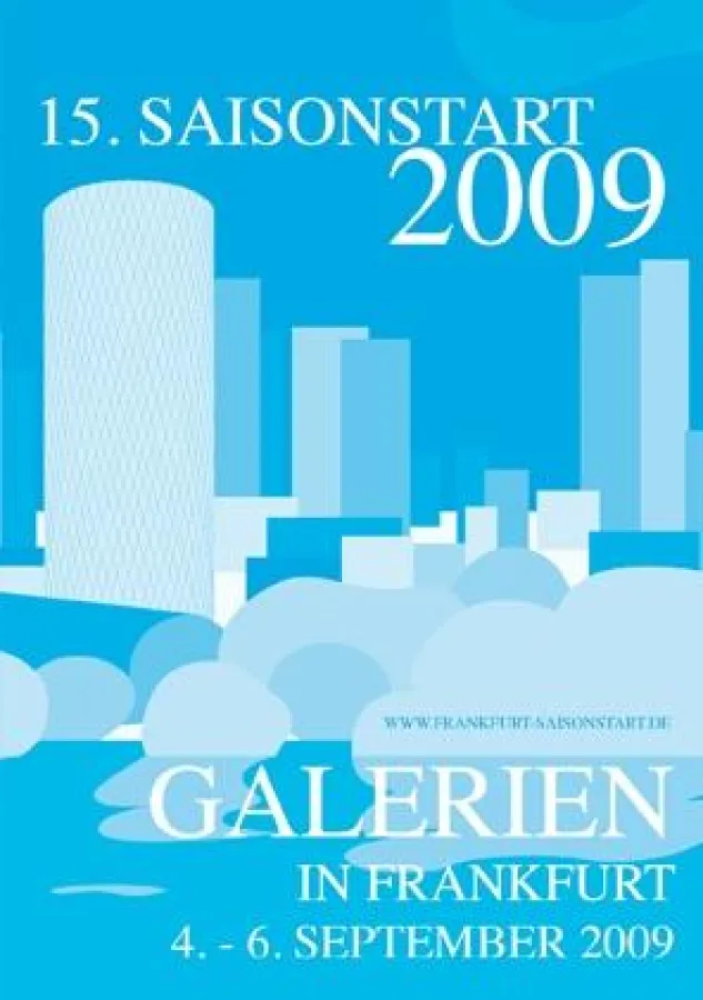 (openPR) Die Galerien werden zum diesjährigen Saisonstart, der vom 4.-6. September 2009 zum 15. Mal veranstaltet wird, hochkarätige Ausstellungen zeigen. Künstler wie Peter Schlör (bei Arte Giani), Herbert Brandl (Bärbel Grässlin), Alisa Margolis (Wilma Tolksdorf), Fides Becker (Heike Strelow), Stefan Hoenerloh (Wild), Nobuyuki Takahashi (Bernhard Knaus Fine Art), Manfred Peckl (Voges Gallery), Peter Rösel (Detterer) sowie Julien Bismuth (Parisa Kind), Matsutani (Japan Art), Sheri Warshauer (DavisKlemm), Tom Christopher (B. von Stechow), Li Jin (Kunstraum Bernusstraße), Michael Irma (Rothe), Manfred Binzer (Prestel), Clarina Bezzola (Adler), Judy Ross (Maurer), Laura Kuch (Lorenz), Claus Delvaux (Uli Gering), Ines Gorges (Schamretta), Marc von der Hocht (Greulich), Edgar Leciejewski (Leuenroth), Jacqueline Devreux (Wagner + Marks) und Bettina Bülow Böll/Christoph Böll (Mühlfeld & Stohrer) sind in Einzelausstellungen zu sehen.