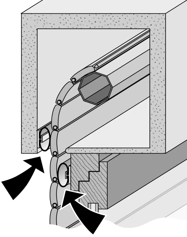 Das Prinzip: Am Auslassschlitz des Rollladenkastens wird - im Idealfall beidseitig- ein weichmacherfreier und dauerelastischer Silikon-Kautschukschlauch passgenau einmontiert und verschließt so den Spalt nach draußen. Der Schlauch lässt sich mittels einem Trägerprofil und zwei hochwertigen Klebebändern auf staubfreiem Untergrund schnell und einfach einkleben.