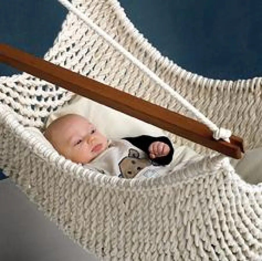 Das knotenfreie Netz aus weicher, naturbelassener Baumwolle - aus kontrolliert biologischem Anbau - nimmt den Körper so auf, das es sich anpasst und druckentlastend wirkt. Die gezielte ergonomische Körperhaltung unterstützt in optimaler Weise die Entwicklung des Kindes. Dank der maschinenwaschbaren Netze ist der Hängestuhl auch für Allergiker gut geeignet.