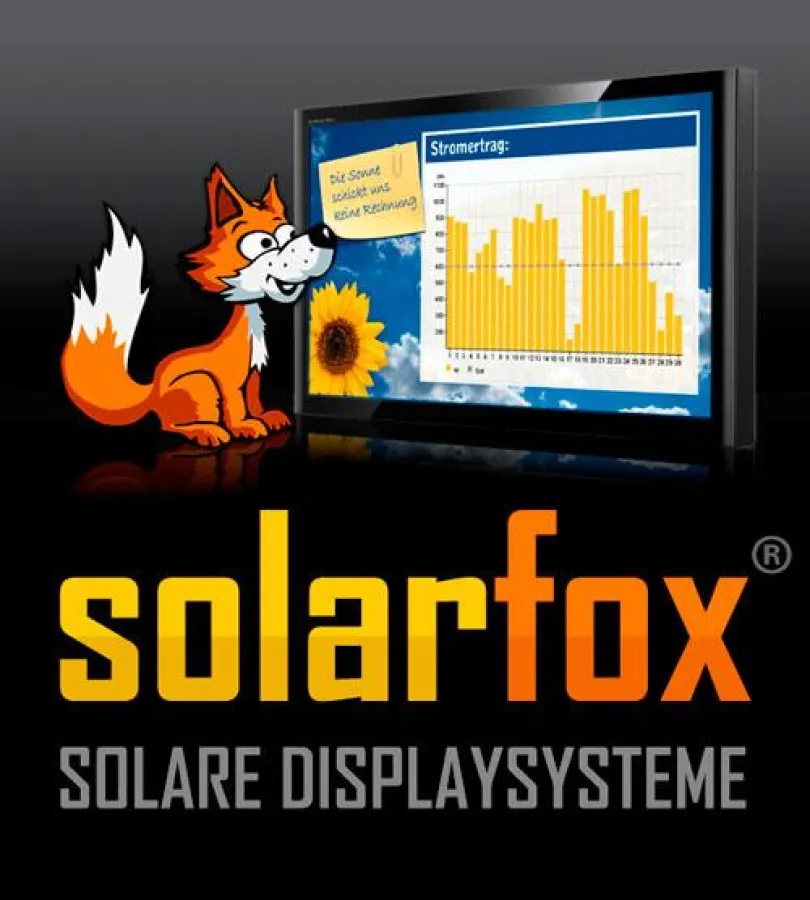 Die Solarfox-Software visualisiert auf eine sehr anschauliche Weise die Leistungsdaten einer Photovoltaikanlage (Solarstromanlage). Die LCD-Monitore verfügen über einen Steuercomputer und können direkt an verschiedene Modelle zur Anlagenüberwachung (Datenlogger wie z.B. Solarlog) angeschlossen werden.