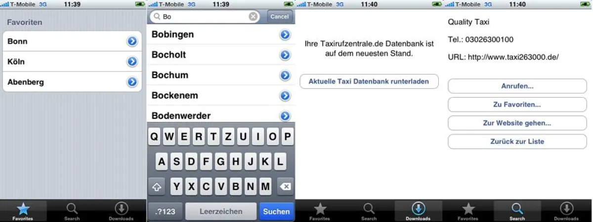 „Mit taxirufzentrale.de auf dem iPhone kann man sich mit ein paar Klicks ein Taxi rufen“ erklärt em|Motion Geschäftsführer Marcelo Emmerich. „Man muß nur die ersten zwei bis drei Buchstaben der Stadt eintippen, in der man sich befindet “