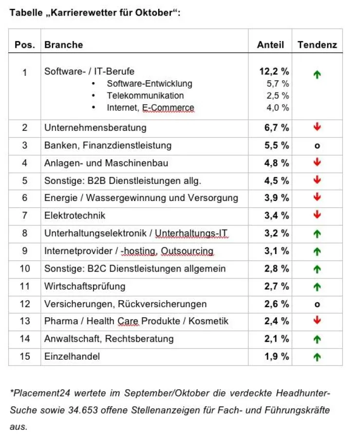 Zur Tabelle "Karrierewetter im Oktober" siehe Anhang.