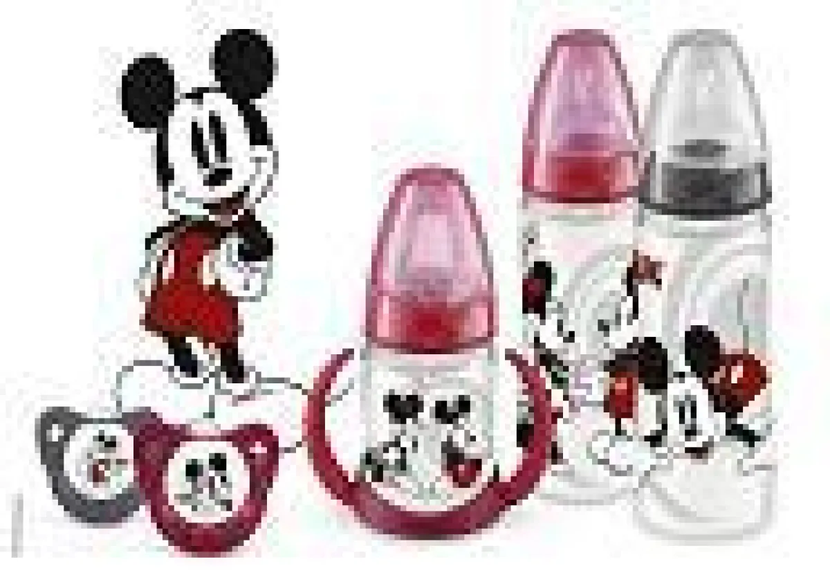 Die berühmteste Maus der Welt schmückt für kurze Zeit auch NUK First Choice-Flaschen mit Silikonsauger in Größe 2 und NUK First Choice Trinklernflaschen mit Silikontülle. Beide Flaschen sind aus BPA-freien, besonders leichtem und robustem Polypropylen (PP). Das NUK First Choice-System wurde für den modernen Babyhaushalt in Zusammenarbeit von Experten und Müttern entwickelt. Der kiefergerechte Trinksauger hat eine extra breite Lippenauflage. Das anerkannte NUK Air System, bei dem sich ein Ventil auf der Oberseite des Saugers befindet, verhindert starken Unterdruck beim Trinken und vermindert das Luftschlucken. Beides zusammen sorgt für einen noch natürlicheren Trinkvorgang und gibt dem Baby ein vertrautes Gefühl – ähnlich wie dem an der Mutterbrust. Ein extra weiter Flaschenhals sorgt dafür, dass sich die Flasche noch einfacher befüllen und reinigen lässt.
