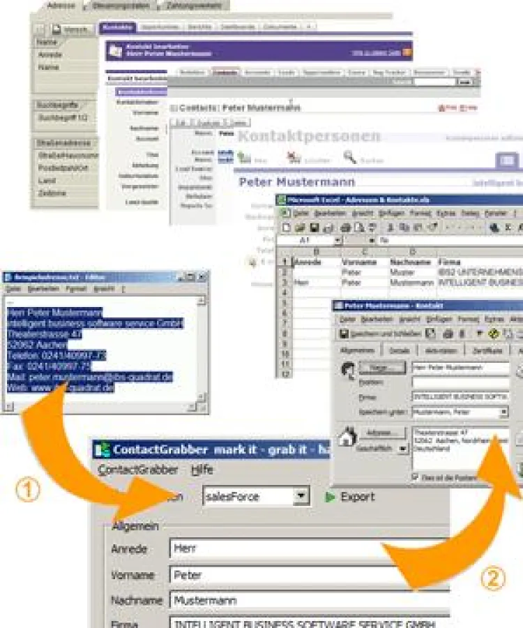 ContactGrabber zerlegt mit einem intelligenten Regelsatz die einzelnen Bestandteile der Adresse/E-Mail Signatur automatisch und ordnet diese den entsprechenden Feldern im Adressbuch/CRM zu.