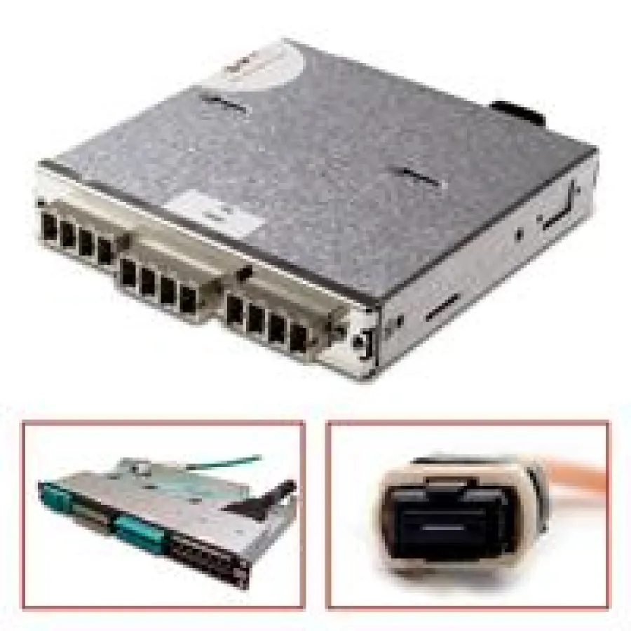 Das tML® URM-Modul ist für den Einbau im tML®-Modulträger vorgesehen. In dem Modulträger, der einer Höheneinheit entspricht, finden acht URM-Module Platz. Auf der Rückseite der Module sind zwei MTP®/MPO Male-Kupplungen angebracht, frontseitig befinden sich 3 URM Kupplungen aus Metall, die jeweils acht Fasern fassen. So lassen sich insgesamt 192 Fasern auf 1 HE platzieren – eine trotz des geringen Formfaktors des URM-Steckgesichts bis dato unerreichte Portdichte.