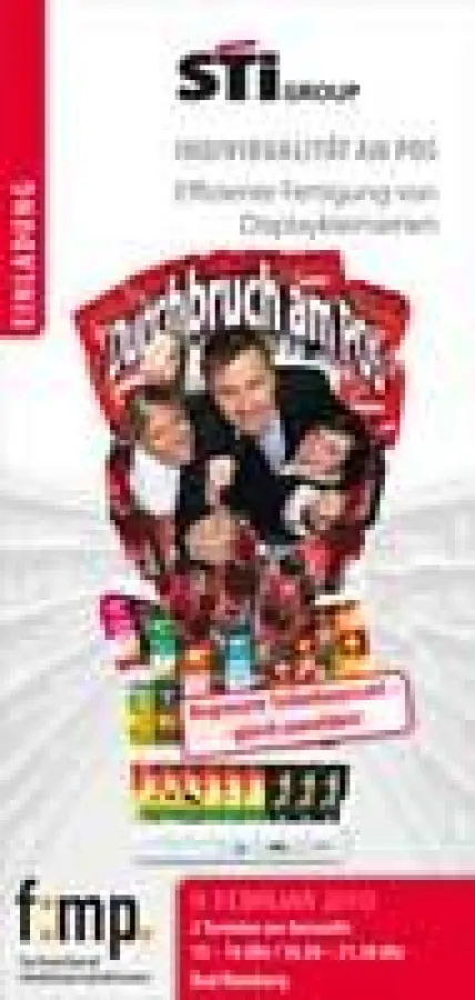 In einem dreistündigen Workshop zeigt der f:mp. gemeinsam mit dem führenden europäischen Displayanbieter STI Group daher Möglichkeiten zur Reduzierung der Time-to-Market durch vernetzte Prozesse. Zudem stellen die Referenten POS-Präsentationen vor, bei welchen sich die neuen Konzepte in der Praxis bereits bewährt haben. So spricht Raphael Stix, Geschäftsführer der Global Shopper GmbH in Hamburg, über den Wandel „Vom Massenmarketing zur individuellen Kundenansprache - Konsequenzen für das POS-Marketing“. Manfred Frisch, Geschäftsführer der Münchner plan + impuls GmbH, stellt gemeinsam mit Claudia Rivinius von der STI Group unter dem Titel „Mehr Attraktivität am POS“ die Ergebnisse einer Category-Studie zur Steigerung der Attraktivität einer Warengruppe vor. Unterstützt wird die Veranstaltung auch von den Druckspezialisten von Hewlett Packard, die vor Ort Möglichkeiten des Digitaldrucks präsentieren. Den virtuellen Gestaltungs- und Plottprozess sowie die Druckvorstufe ermöglicht EskoArtwork.