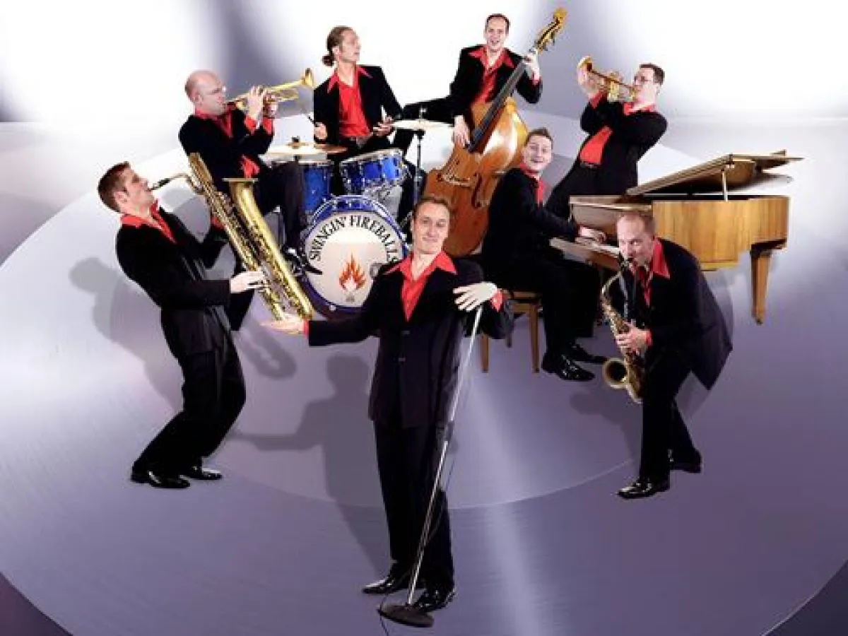 Die SWINGIN FIREBALLS lassen im 100. Jubiläumsjahr von Louis Prima den Flair und die Ausgelassenheit der amerikanischen Swing Ära wieder lebendig werden und garantieren noch heute den musikalischen Humor und das mitreißende Entertainment der 50er und 60er Jahre. In rasanter Folge präsentieren sie einen „Hit“ nach dem anderen. Ob Bigband-Swing, Rock'n'Roll, Mambo, Jump'n'Jive oder Rumba - alle Stücke im Repertoire haben eine Sache gemeinsam - sie sind selbst arrangiert im typischen Stil der „kleinsten Big Band der Welt“, stets mit einer Verbeugung vor dem Original, aber in neuem Sound und gewürzt mit eigenen Ideen.
