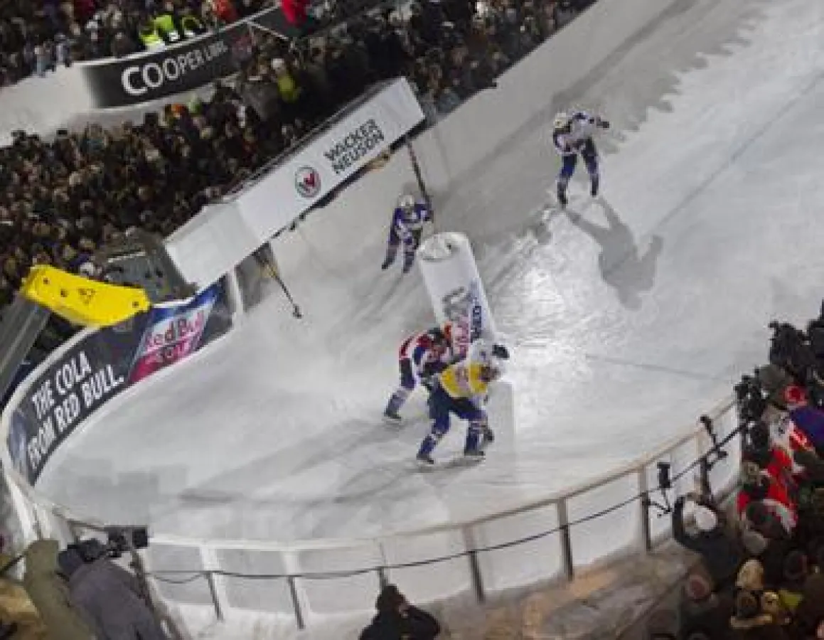 (München, 1. Februar 2010) Am 16. Januar kämpften 64 Cracks auf Schlittschuhen im Münchner Olympiapark um den Sieg beim ersten Rennen der „Crashed Ice“-Weltmeisterschaft 2010. Hinter den Kulissen der spektakulären Sportart, die über 50.000 Zuschauer anlockte, sorgten Maschinen von Wacker Neuson und Kramer Allrad dafür, dass Auf- und Abbau der imposanten Eisrennbahn reibungslos, termingerecht und professionell abgewickelt wurden.