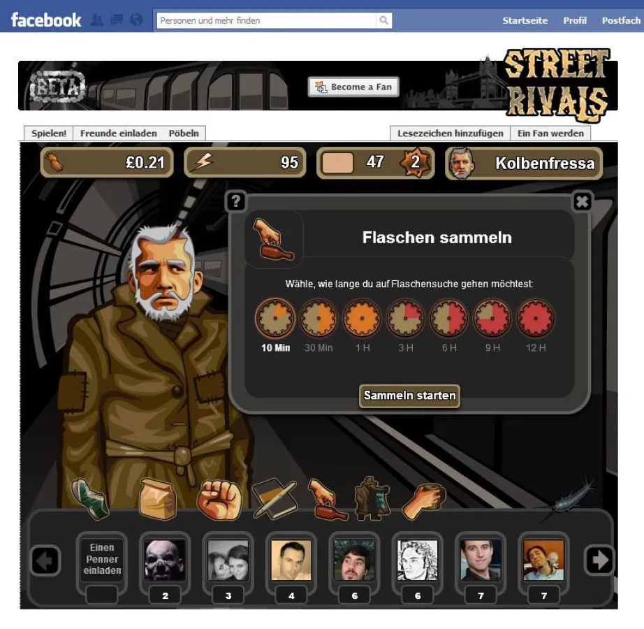 (openPR) Hamburg, 4. Februar 2010 – Pennergame-Fans können ab sofort auch auf Facebook Pfandflaschen sammeln, betteln und saufen. Anstelle von lokalen Marken ist Pennergame als globaler Titel StreetRivals auf Facebook gestartet und von Anfang an in mehreren Sprachen verfügbar. Bereits nach dem ersten Tag zählte das provokante Spiel über 20.000 Spieler. "StreetRivals ist mit Abstand das lustigste Facebook-Spiel, das ich kenne", so Spieler Marcus (22).