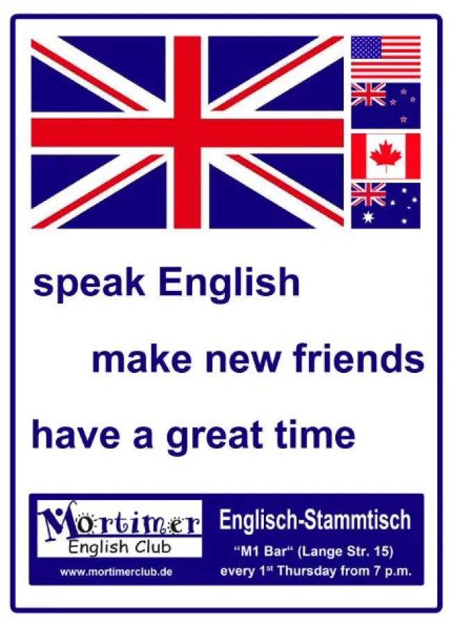 (openPR) Am 04.03.2010 ab 19 Uhr geht der Greifswalder Englisch-Stammtisch in die erste Runde. Der Mortimer English Club und die M1 Bar laden alle Englischinteressierten ein, sich einen Abend im Monat ganz ihren Sprach- und Reiseinteressen zu widmen. Der Stammtisch möchte eine Plattform etablieren für alle, die Kontakt zum englischsprachigen Ausland suchen, Englisch lernen oder lernen möchten oder aber auch einfach nur nette Leute mit ähnlichen Interessen suchen und dabei noch regelmäßig Englisch sprechen wollen. Jeden ersten Donnerstag im Monat öffnet Morten Krohm die M1 Bar für alle Englisch-Fans, jedes Mal unter einem Thema. Am 04.03. ist "Game Night": Brettspiele aller Art sind gern gesehen. Clara-Annette Seidlein vom Mortimer English Club in Greifswald stellt ebenfalls ein paar Spiele-Klassiker im englischen Original zur Verfügung. Weitere Themen-Stammtische wie "Karaoke Night" und "London Night" sind in Planung - frei nach dem Motto "speak English - make new friends - have a great time"!