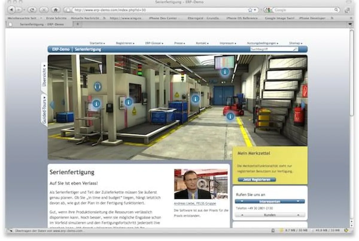 Entstanden ist eine virtuelle Fabrik, die Interessenten die Funktionen von ERP-Software im Allgemeinen und der Lösung PSIpenta im Speziellen praxisnah erklärt. Anhand von 14 Themenwelten kann der praktische Nutzen der Software direkt im Fertigungsbetrieb nachvollzogen werden. Anschaulich erklärt anhand zahlreicher Videos und Screencasts.