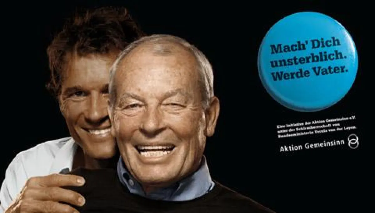 (openPR) „Mach dich unsterblich! Werde Vater!“ Mit diesem Slogan appelliert Deutschlands älteste Bürgerinitiative, die „Aktion Gemeinsinn e.V.“ an junge Männer, sich für die Gründung einer Familie zu entscheiden. Auf dem entsprechenden Kampagnenplakat sieht man eine prominente Person, z.B. den Fußballer Jens Lehmann, im Hintergrund – und seinen fröhlich lächelnden Vater im Vordergrund. Mit der Bundesministerin für Familien, Senioren, Frauen und Jugend, Kristina Schröder, hat die Aktion Gemeinsinn nun eine Schirmherrin aus der Politik für die Kampagne gewinnen können. Sie freue sich über den „schönen Slogan“, der sehr geeignet sei, jungen Männern mehr Mut zur Vaterschaft zu geben, erklärt die Ministerin ihre Bereitschaft, das Anliegen zu unterstützen.