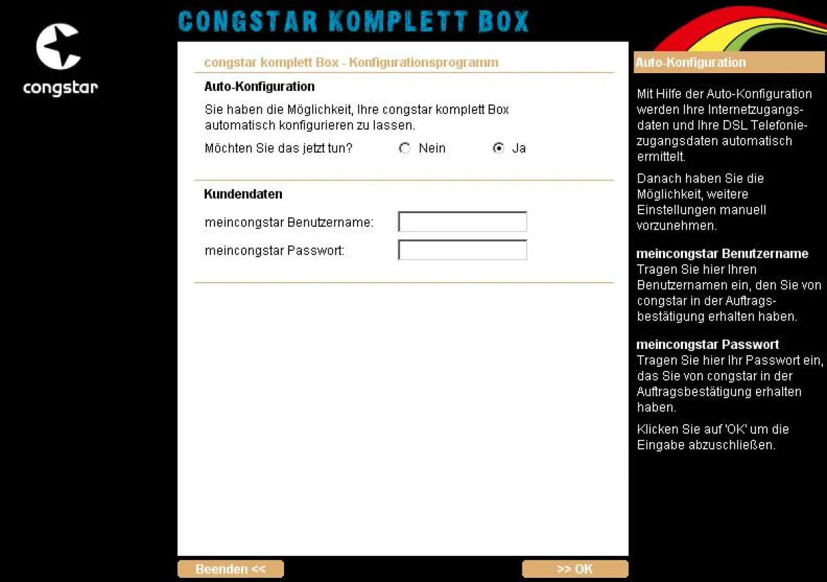 "congstar komplett" mit der Auto-Konfiguration von fun communications.