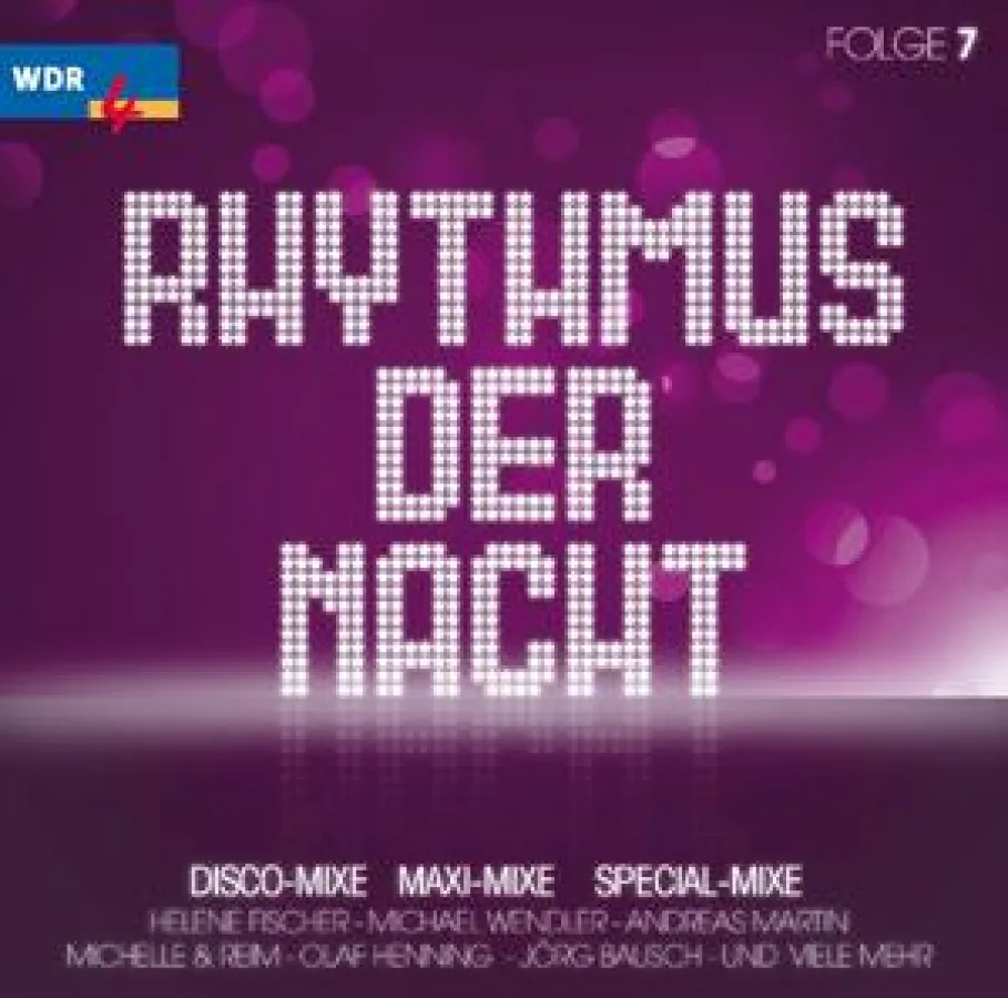 WDR4 Rhythmus der Nacht Volume 7 beinhaltet die aktuellen Top Hits von Schlager & Partygrößen wie Andrea Berg, Michael Wendler, Jürgen Drews, DJ Ötzi, Olaf Henning, Andreas Martin, NIC und vielen anderen. Dazu gibt es Klassiker von u.a. Purple Schulz, Fux, Michelle & Reim in speziellen Extended oder Dance-Versionen.