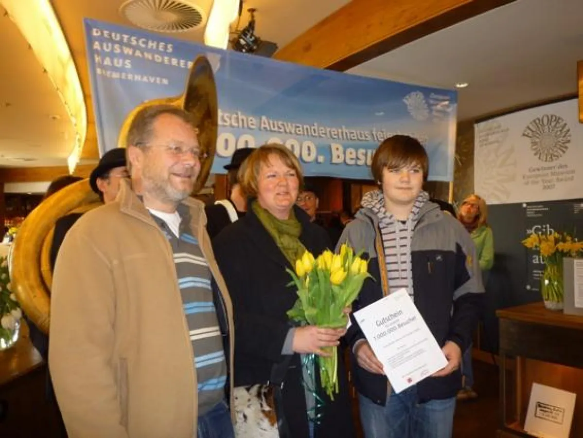 (openPR) Nachdem am vergangenen Sonntag die 999.000 Besucherin im Deutschen Auswandererhaus Bremerhaven begrüßt wurde, empfing das Museum am Dienstag, 30. März 2010, den millionsten Besucher seit der Eröffnung am 9. August 2005. Für alle Gäste an diesem Tag gab es Blumen. Eine Marshing Band verkündete in ganz Bremerhaven die Nachricht.