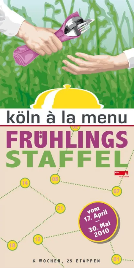 Alle Menüangebote sind in einer Broschüre zusammengefasst, die ab sofort bei allen Teilnehmern, im KölnTourismus Service-Center am Dom und im Kölner Einzelhandel kostenlos ausliegt. Weitere Infos unter www.germanwings.com/fruehlingsstaffel.
