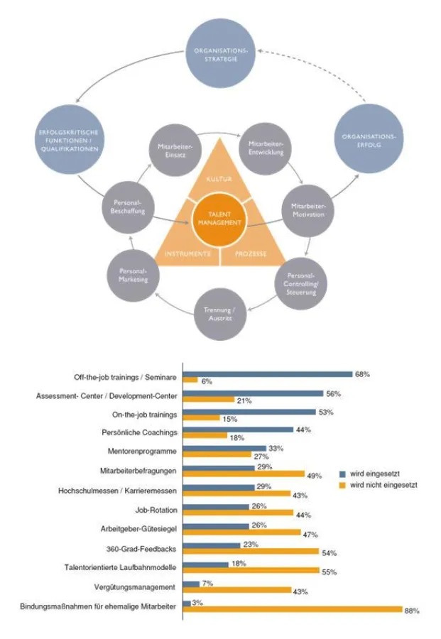 Allerdings werden auch Entwicklungsfelder deutlich: In vielen der befragten Unternehmen existiert keine klar definierte Talent Management-Strategie. Das Talent Management ist primär den Bereich Personalentwicklung zugeordnet und es findet häufig keine aktive Einbindung der Führungskräfte statt. Instrumente zur Erfolgsmessung und Steuerung werden nur in relativ geringem Maße genutzt.