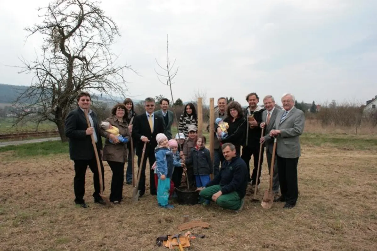 Eichenzell / Flieden. Jedes neugeborene Kind bekommt ab sofort einen Baum. Einen Apfelbaum. Möglich macht das eine Kooperation des Mineralbrunnens Förstina und der Kelterei ELM mit deren Heimatgemeinden Eichenzell und Flieden. Den Startschuss für das Projekt „Ein Kind, ein Baum“ gaben Unternehmens- und Gemeindevertreter nun mit der symbolischen Pflanzung eines ersten Apfelbaums am Ortseingang von Lütter.