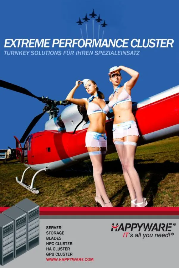 … der Kunde 12 Monate Vor-Ort-Service dazu. Damit spricht der Hersteller, Distributor und Lösungsanbieter Happyware das Kundenklientel aus den Bereichen HPC, Supercomputing, Clustering und natürlich auch dem Cloudcomputing an.