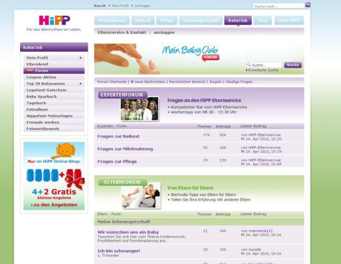 Im Internet zu finden unter: www.hipp.de/forum