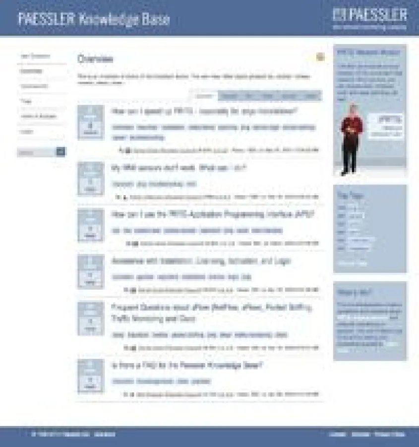 Nürnberg, 11. Mai 2010 – Die Paessler AG (de. paessler.com) hat ihren Kundensupport um eine neue, interaktive Online-Knowledge-Base erweitert. Damit stellt sie ihren Kunden eine Wissensplattform zur Verfügung, die weit über den reinen Produktservice hinausgeht und Informationen und Tipps zur optimalen Überwachung von Netzwerken bietet.