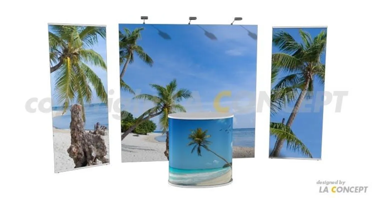 Die Firma LA CONCEPT bietet ein breites Spektrum an mobilen Präsentationssystemen. So können für jeden Anlass individuelle Messe-Sets erstellt werden. Mit Hilfe der Schwesterfirma NEWROOM MEDIA können die mobilen Messestände mit interaktiven Medien erweitert werden. Durch Infoterminals, dem interaktiven Air Touch Window, sowie Public Screens ist der direkte Kontakt mit der Zielgruppe möglich. Dieser Infotainment- und sogar Edutainment-Charakter ist häufig ein entscheidender Vorteil am Messestand, um die Zielgruppe auf sich aufmerksam zu machen.