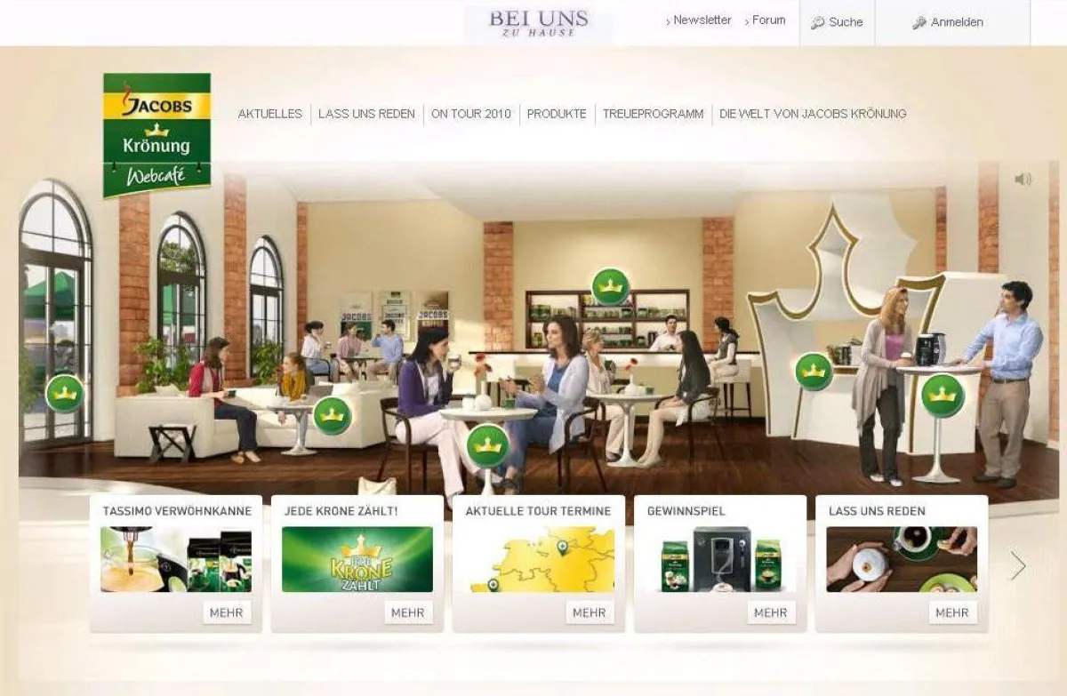 Darüber hinaus lädt das Webcafé zu einer Reise durch die vielfältige Produktwelt ein, bietet Neuigkeiten rund um die Jacobs Krönung Eventtour und ermöglicht die Teilnahme am Treueprogramm „Jede Krone zählt“ und zahlreichen Gewinnspielaktionen.