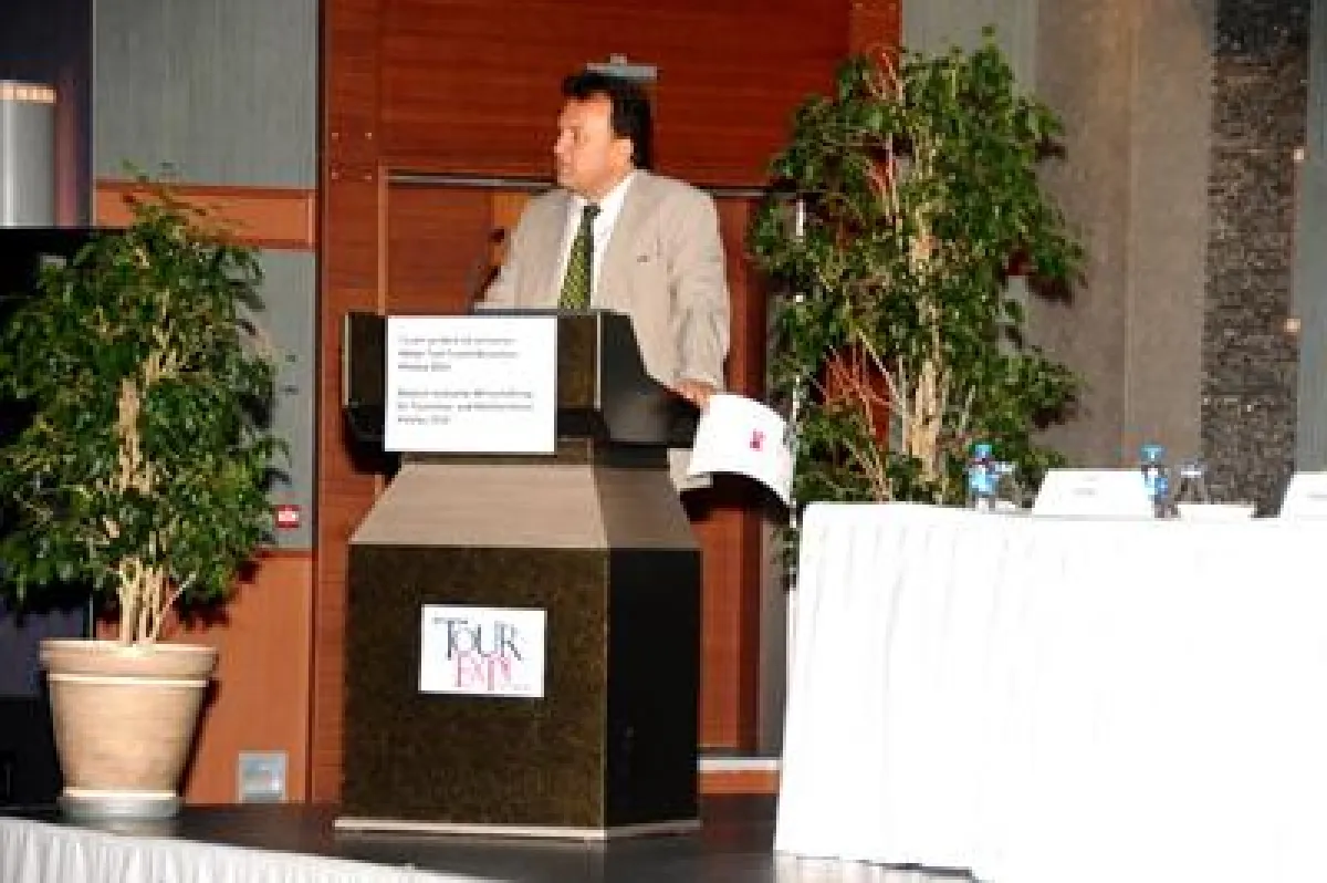 Auch das vom türkischen Partner Tourexpi unter Leitung Herrn Hüseyin Baraners organisierte Vortragsprogramm hatte es in sich: Fikret Demirtürk, Vorstandsmitglied des Hotelverbands Türkische Riviera (AKTOB), Ali Peker, Vorstandsmitglied der Industrie- und Handelskammer Antalya (ATSO), Mehmet Haciarifoglu, der Vorsitzende des Verbandes der Industriellen und Unternehmer Antalyas (ANSIAD), Bülent Yildirim, Wirtschaftspolitischer Sprecher des Oberbürgermeisters der Stadt Antalya sowie Yildirim Ucar, der stellvertretende Gouverneur der Provinz Antalya, statteten die Gäste aus Deutschland in kurzen Vorträgen mit Informationen über die allgemeine Wirtschaftslage, die Entwicklung des Tourismus sowie über das Investitionsklima und Möglichkeiten für die Zusammenarbeit an der Türkischen Riviera aus und bekundeten ein großes Interesse an einer Zusammenarbeit mit deutschen Unternehmen – nicht zuletzt, da auch ein Großteil der Urlauber an der Türkischen Riviera weiterhin aus deutschen Landen kommt.