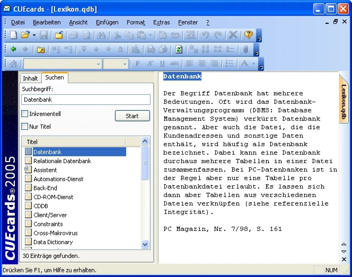 CUEcards 2005: Notizen im virtuellen Karteikasten erfassen