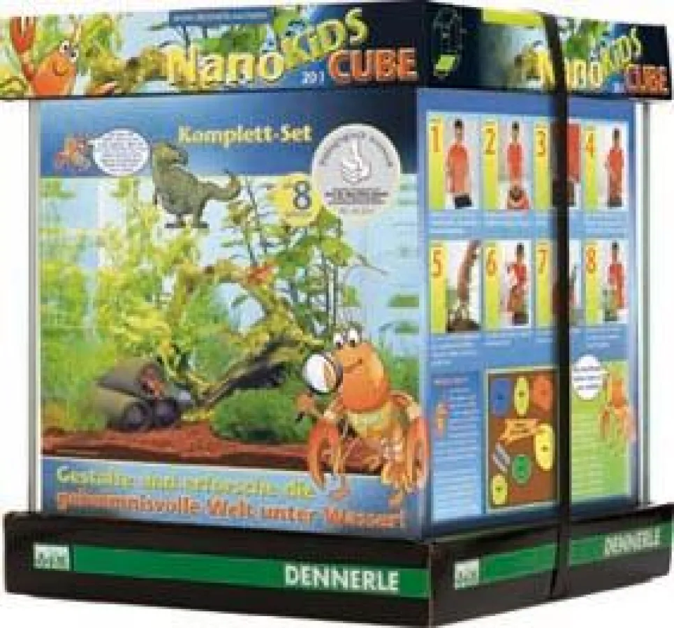Eine ganze Unterwasserwelt passt in einen gläsernen Würfel – und in jedes Kinderzimmer. Was klingt wie Zauberei ist Natur zum Anfassen und Entdecken. Schon ab 8 Jahren können kleine große Forscher mit einem Nano-Aquarium ihre eigene Süßwasserwelt gestalten, pflegen und erforschen. Pflanzen und Tiere werden ganz nah erlebt; Kreativität und Konzentration gefördert. Der Flusskrebs „Denny“ führt durch eine leicht verständliche und reich bebilderte Anleitung und das Forscher-Logbuch. Entwickelt wurde der Cube zusammen mit Prof. Dr. Hans-Peter Ziemek vom Institut für Biologiedidaktik der Justus-Liebig-Universität Gießen.