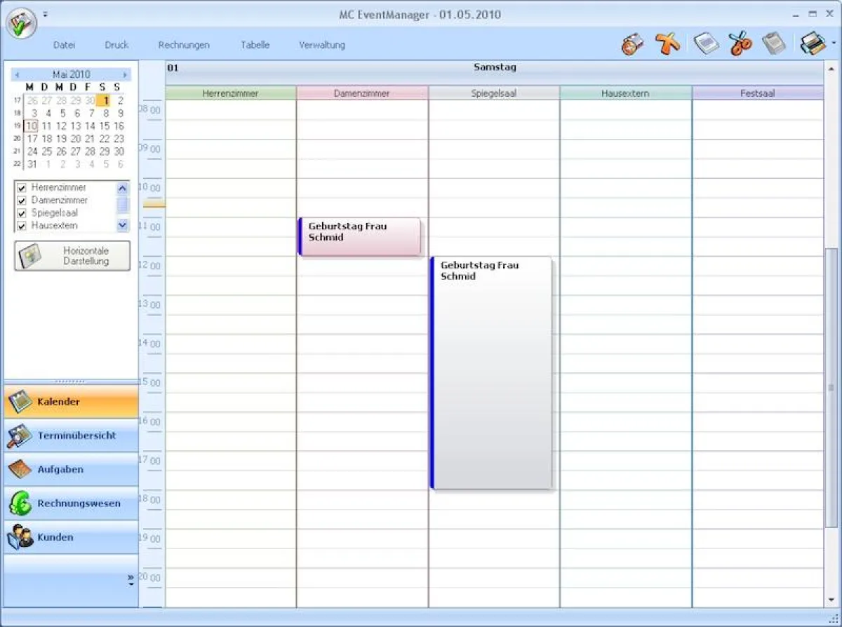 Eine weitere gelungene Modifizierung, die die Effizienz steigert, stellt die überarbeitete Raumbelegung im Veranstaltungsplaner dar. Hier werden nun alle Reservierungen in einem grafischen Diagramm dargestellt, das sich ganz einfach per Mausklick editieren lässt.