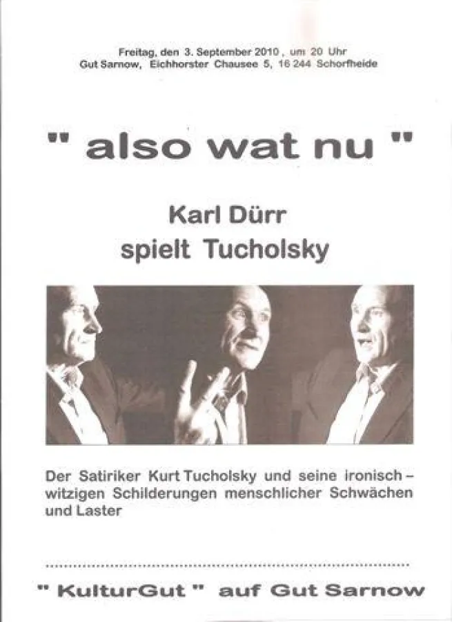 (openPR) Am Freitag, 10. September 2010, findet um 20 Uhr auf Gut Sarnow, Schorfheide-Groß Schönebeck, ein literarischer Abend rund um Kurt Tucholsky statt.