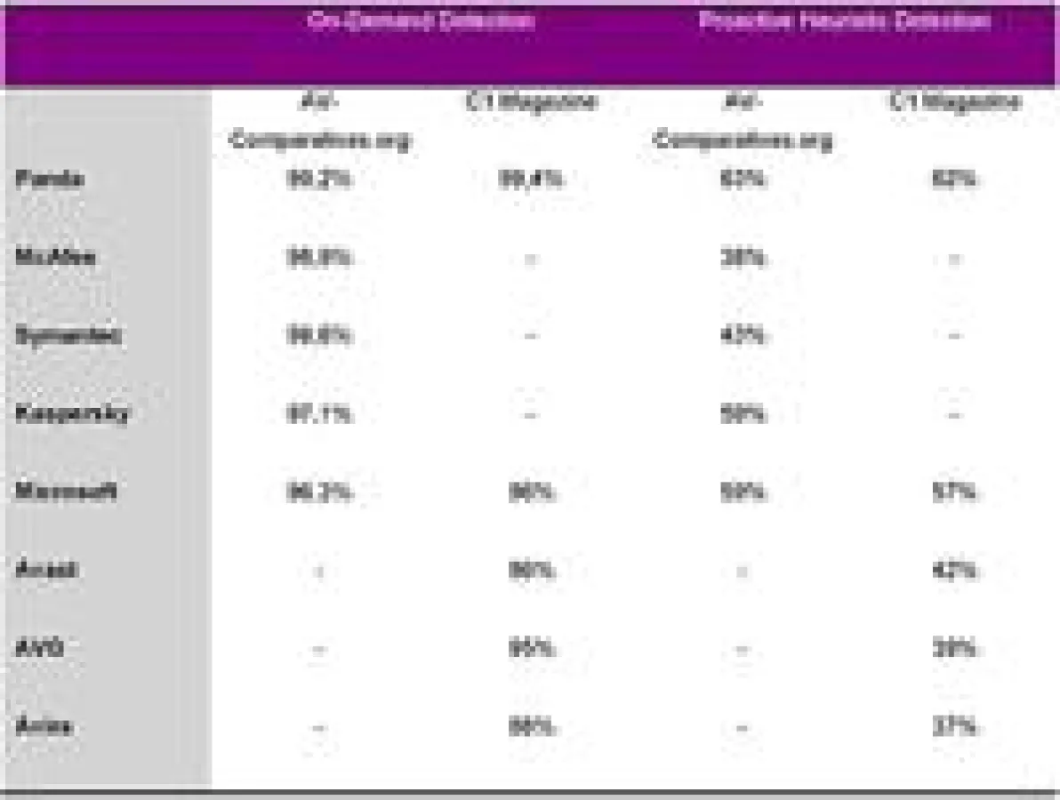 Beim Retrospective/Proactive Test von AV Comparative im Mai 2010, bei dem nur heuristische und generische Signaturen verwendet wurden, erreichte Panda Antivirus Pro 2010 sehr gute Ergebnisse in der Malware-Vorbeugung. „Die gesamten Testergebnisse zeigen, wie zuverlässig die Antiviren-Scanner mittlerweile das proaktive Aufspüren und den Schutz vor neuer Malware beherrschen“, so der AV-Comparatives.org-Bericht. Panda liegt dabei mit einer Erkennungsrate von 63 Prozent ganz vorn. Der Test wurde von Februar bis Mai mit fixen Signaturen durchgeführt. Im On-Demand-Test im Februar 2010 erkannte Panda Antivirus Pro 2010 auf Abruf 99,2 Prozent an Schädlingen. Während des Tests wurden 1.2 Millionen Malware-Exemplare auf die Software losgelassen.