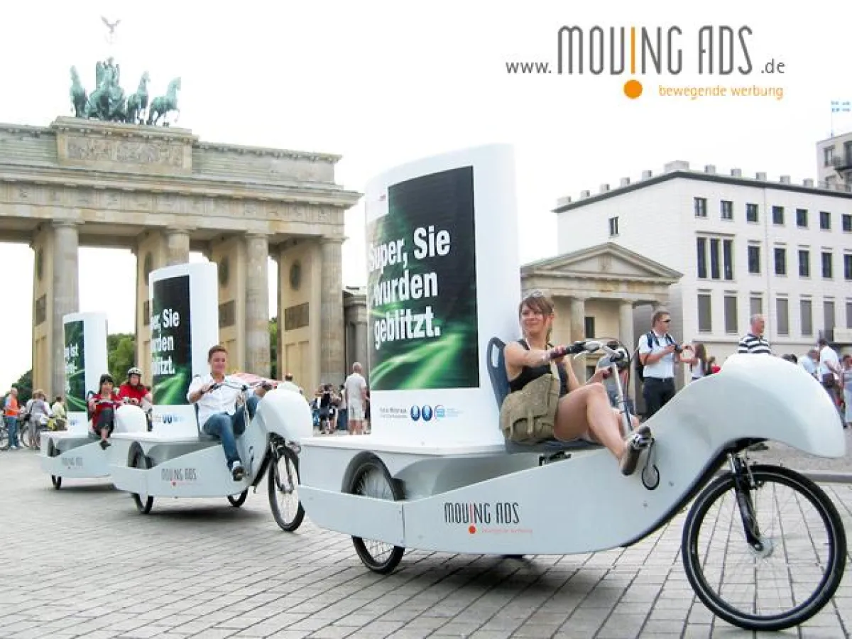Die Werbekampagne mit den moving ads-Bikes vor dem Brandenburger Tor an zwei Wochenenden trägt in jedem Fall dazu bei.