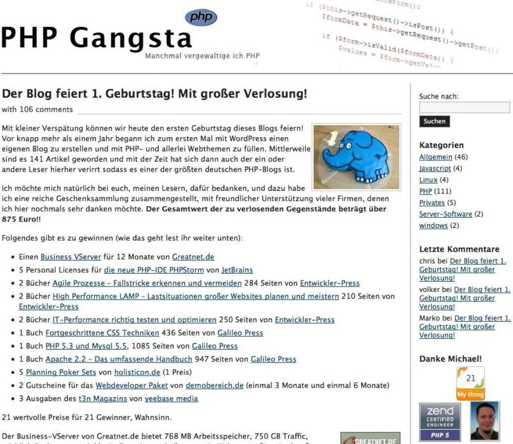 Sie lesen gerade: Bekannter deutscher PHP Blog feiert ersten Geburtstag mit großer Verlosung