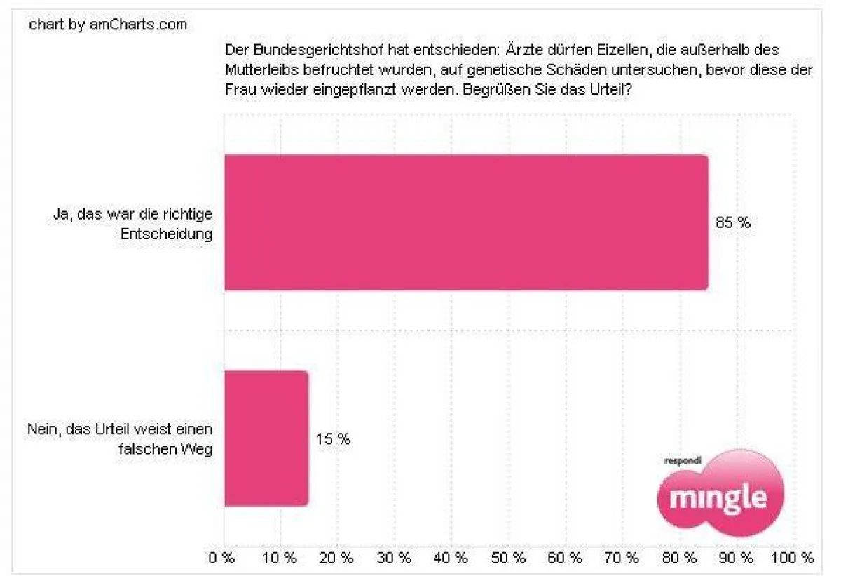 (openPR) Ergebnisse der mingle-Trend-Umfrage zum BGH-Urteil über Präimplantationsdiagnostik