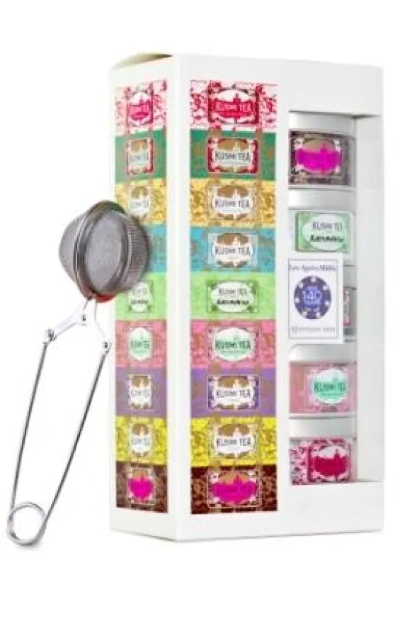 Da man als zuvorkommender Gastgeber seinen Gästen eine feine Auswahl an verschiedenen Tees anbieten möchte, hat Kusmi Tea fünf Miniaturen für den Nachmittag in einer Box inklusive Teezange zusammengestellt. Ob japanischer Grüntee, Tee Saint Petersburg oder wärmender Schokotee, für jeden Geschmack ist etwas dabei.