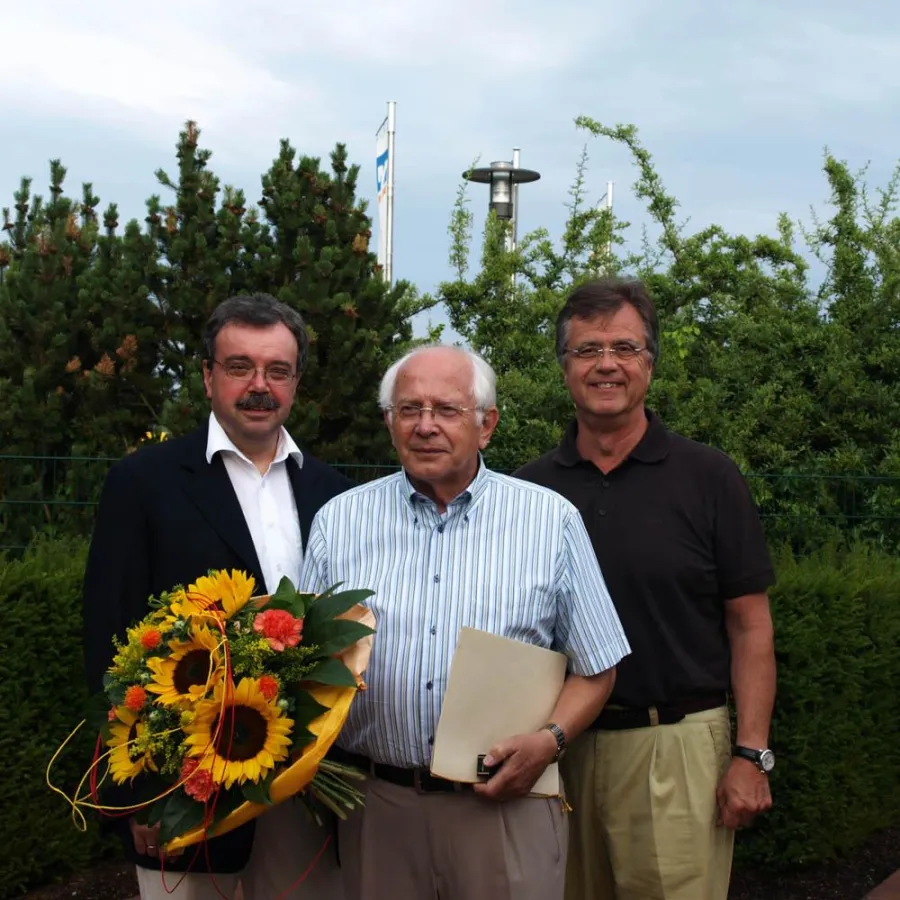 Beim geselligen Grillabend auf der Terrasse vom „Haus der Volksbank“ in Neuwerk bekam Hans Mäurer die „Ehrennadel in Gold“ des DGRV, Deutscher Genossenschafts- und Raiffeisen Verband, verliehen. „Diese Ehre wird nur besonderen Menschen mit besonderen Verdiensten zuteil“, freuten sich der Vorstandsvorsitzende Lothar Erbers und der Aufsichtsratsvorsitzende Fred Hendricks in ihren kurzen, aber dafür umso herzlicheren Ansprachen.