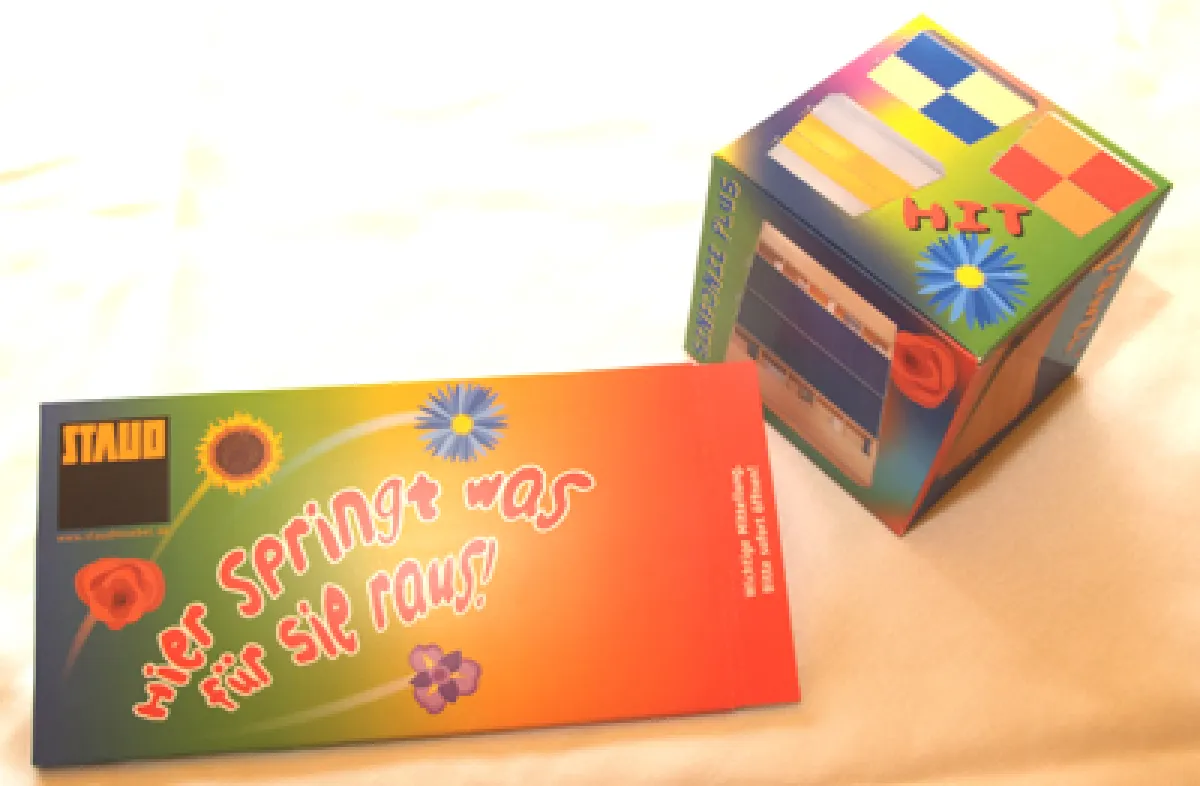 Die alltägliche Informations- und Reizüberflutung einerseits und die zunehmend verhärtete Abwehrhaltung der Abnehmer andererseits fordern die Marketing- und Werbeverantwortlichen -völlig zu recht- zu mehr kreativen und auffälligeren Selfmailern heraus. Die Menschen in Unternehmen, als Kunden, Interessenten oder die Endverbraucher direkt sind als Teil einer modernen Konsumgesellschaft einem permanenten Informations- und Werbedruck ausgesetzt, dem sie nur standhalten können durch eine konsequent selektive Wahrnehmung. Mittelmaß oder Standard- Selfmailer finden folgerichtig weniger Beachtung und landen ungesehen im Papierkorb; nicht nur wertvolle Zeit, sondern auch Geld wird dabei durch die hohen Streuverluste vernichtet. Dem setzt die ProConception Consulting ihren impactstarken und responseorientierten 3D Würfel mit Aha-Effekt als Selfmailer entgegen . Der 3D-Selfmailer ist ein ideales Mailing-Instrument, um die mentale Barriere der Empfänger zu durchbrechen und deren Aufmerksamkeit „schlagartig“ zu wecken. Der 3D-Selfmailer wird aus einem „Stück“ gefertigt und vereinigt die Elemente Versandcouvert, Informationswürfel und Antwortmittel in einem einzigen Medium, das zuerst durch seinen unkonventionellen Auftritt Neugierde weckt. Wird die Perforation aufgerissen entfaltet sich blitzschnell ein zirka 95 mm großer Würfel und die Botschaft sitzt! Das Überraschungsmoment spielt bei dem ProConception 3D-Selfmailer eine wichtige Rolle. Mit den sechs Flächen des 3D-Würfels lassen sich außergewöhnliche Effekte erzielen. Ein- oder mehrfache Personalisierungen und -Individualisierungen geben der Botschaft einen persönlichen Touch. Die Beilage von Gutscheinen (zum Beispiel Messeeinladungen) und zusätzliche Antwortmitteln steigert nicht nur die Attraktivität sondern fördert die Dialogbereitschaft.