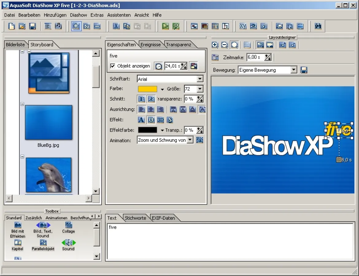 DiaShow XP five: Diashows für DVD-Player und PCs