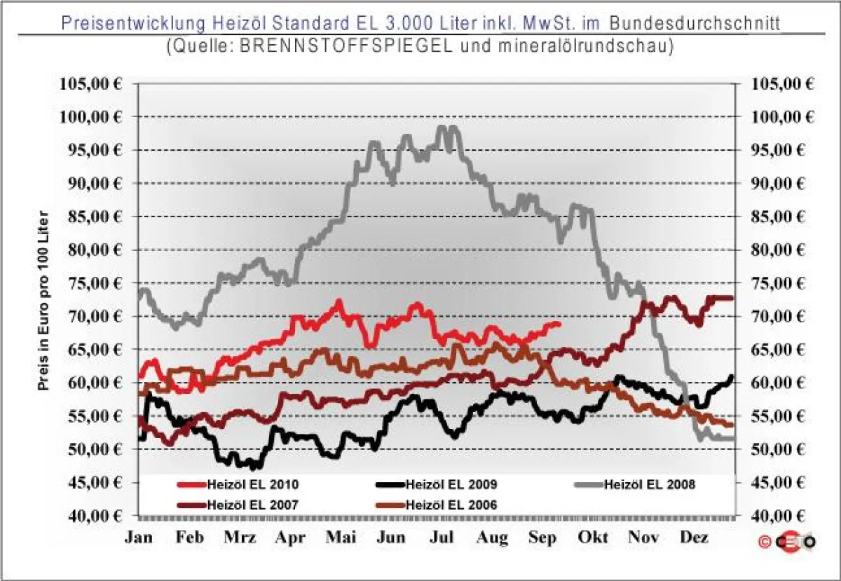 BRENNSTOFFSPIEGEL: Heizölpreis heute 1,25 Euro teurer als zu Wochenbeginn