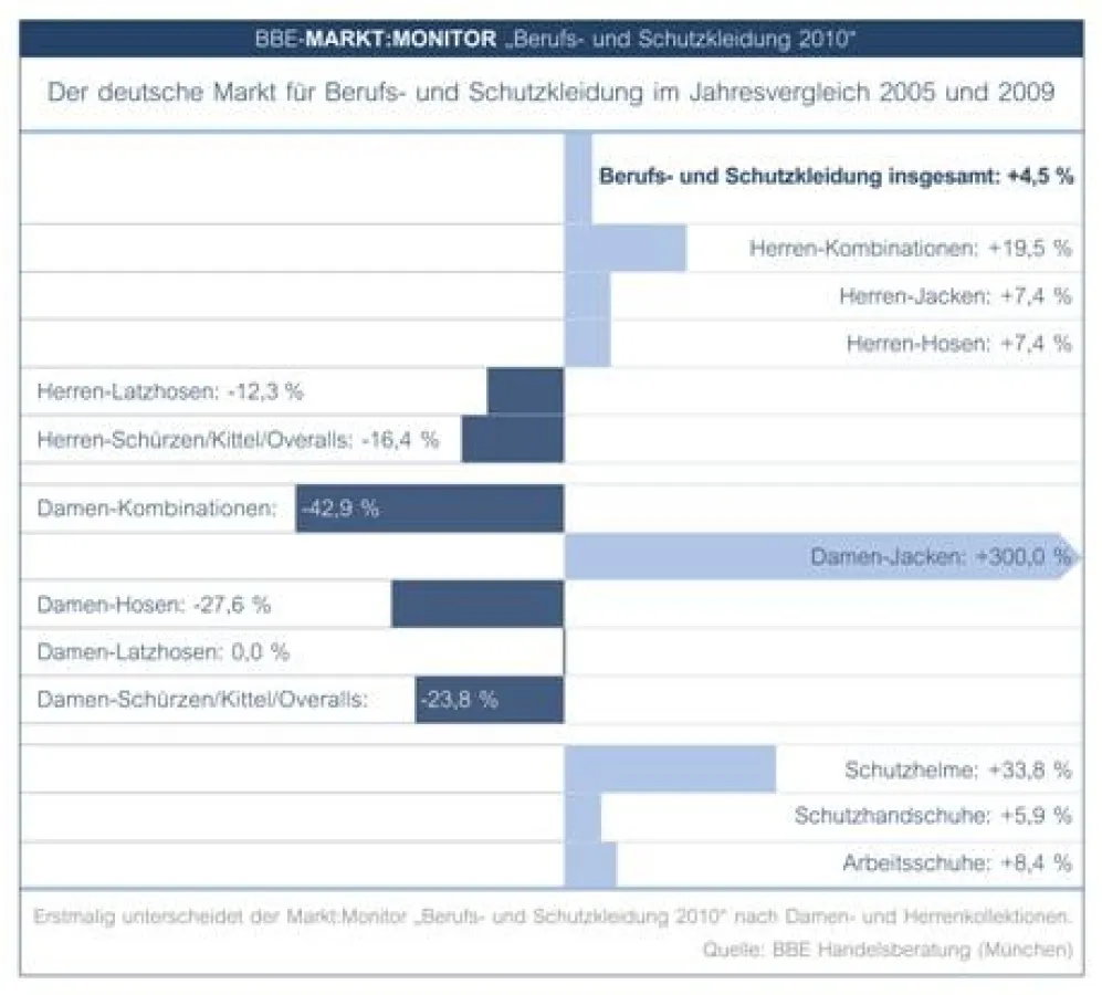 Marktbewertungen konstatieren regelmäßig, dass Deutschland im Spezialfeld der technischen Textilien, zu denen auch Berufs- und Schutzkleidung zählt, eine starke Marktposition hat und weiterhin mit Wachstum rechnen kann. Allerdings fehlt in der Regel fundiertes Zahlenmaterial, das diese Prognose unterstreicht. Der aktuelle „Markt:Monitor Berufs- und Schutzkleidung 2010“ der BBE Handelsberatung, der in Zusammenarbeit mit marketmedia24 entstanden ist, füllt nun diese Lücke.