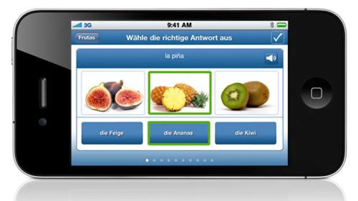 Die Applikation kann auch ohne Internet-Verbindung verwendet werden und beinhaltet busuu.com´s bereits mehrfach ausgezeichnete, audiovisuelle Lerninhalte mit Photos und Audio Datein.