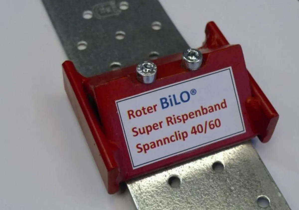 (openPR) Neuer „Roter BiLO® Super Rispenband Spannclip 40/60“ von BiERBACH® garantiert Spannung pur im Hallendach – und das dauerhaft. Mit der Befestigungshilfe lassen sich 40er und 60er Rispenbänder zur Stabilisierung der Balkenkonstruktion in kürzester Zeit nachspannen, um höchste Lasten abzuleiten.