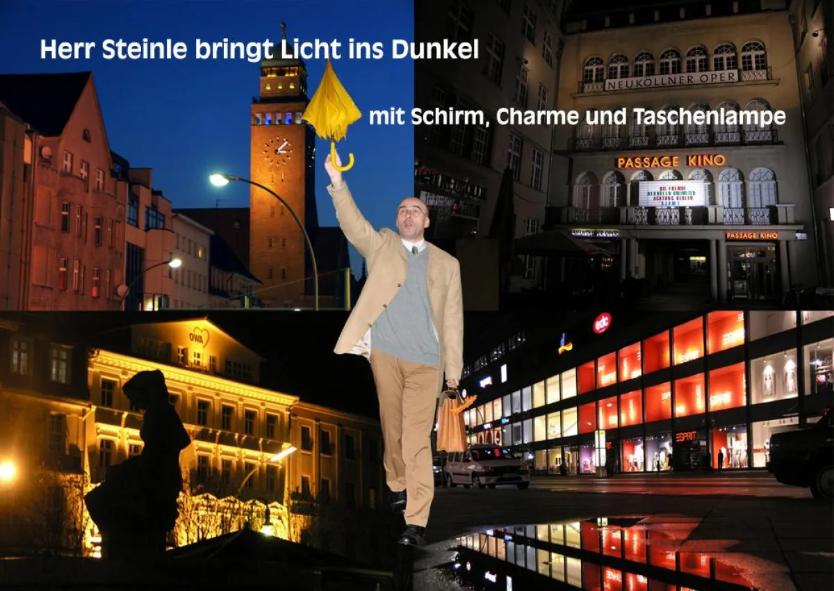 Nach Beendigung der zweiten Tour (ca. 22:00 Uhr) wird dann die große Schirmtausch-Aktion vor dem Rathaus Neukölln stattfinden á la „tausche alt gegen älter“. Vielleicht können Sie ja hier eine echte Antiquität ergattern!