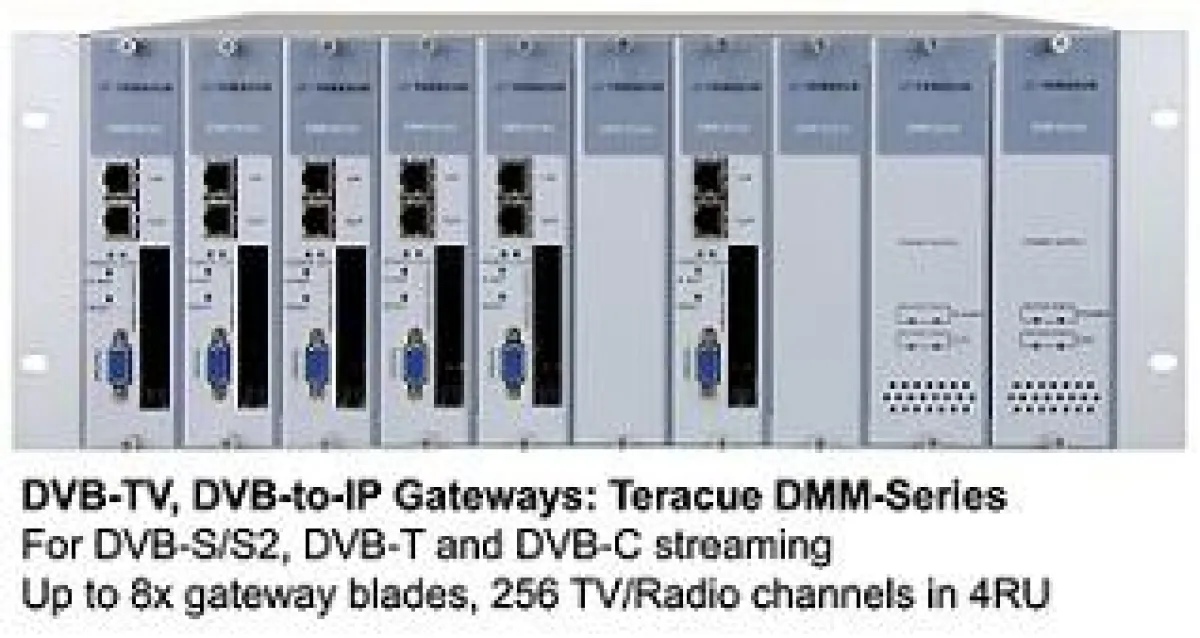 Teracue brachte zur Einspeisung der Satellitensignale sechs DVB-TV, DVB-to-IP Gateways der DMM-140 Serie zum Einsatz. Insgesamt werden derzeit 21 Fernsehkanäle als IP Streams in das Netzwerk eingespeist. Ein einzelner TV Netzwerk-Stream kann dabei eine unbegrenzte Anzahl von Set Top Boxen beliefern.