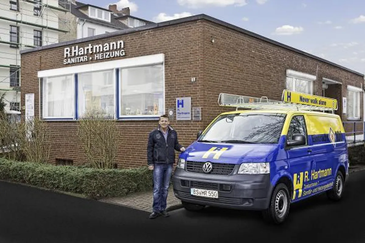 (openPR) Das neue Firmenfahrzeug der R. Hartmann GmbH Sanitär- und Heizungstechnik kommt in Blau und Gelb, „den schönsten Farben dieser Welt“ daher. Für Geschäftsführer Nils Niefünd ist dies selbstverständlich, schlägt sein Herz doch für die Braunschweiger Eintracht, bei der er auch Poolpartner ist.