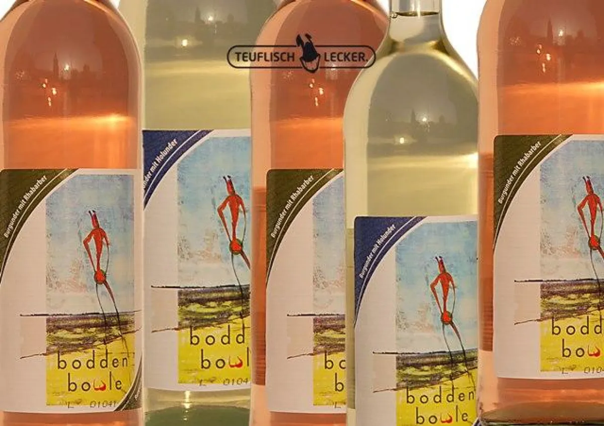 Der fruchtig, herbe Geschmack vom Rhabarber bietet zusammen mit einem Burgunder- Cuvée mit 5% vol. die erfrischende Alternative zu Bier und Co, eiskalt serviert auf der Sonnenterasse und im Biergarten. Zu beziehen ist Bodden Bowle Rhabarber ebenso wie Holunder ab sofort in der 0,75-Liter Glasflasche über den Getränkefachgroßhandel und im Teuflisch Lecker-Onlineshop. Nach neun Jahren hat das Künstleretikett, in Vorbereitung der Einführung in den Handel, eine neue Optik erhalten. Zum 10-jährigen Bodden Bowlen Geburtstag in 2012 ist eine weitere Geschmacksrichtung in Vorbereitung. Die Teuflisch Lecker KG mit Sitz in Schermbeck/NRW ist ein unabhängiges Getränkelabel, gegründet von Kulturschaffenden. Der Name "Bodden Bowle" ist Synonym und Metapher für den Entstehungsort der Weinmischgetränke, die "Bodden" an der Küste in Mecklenburg-Vorpommern, wo Süß- und Salzwasser in einander fließen.